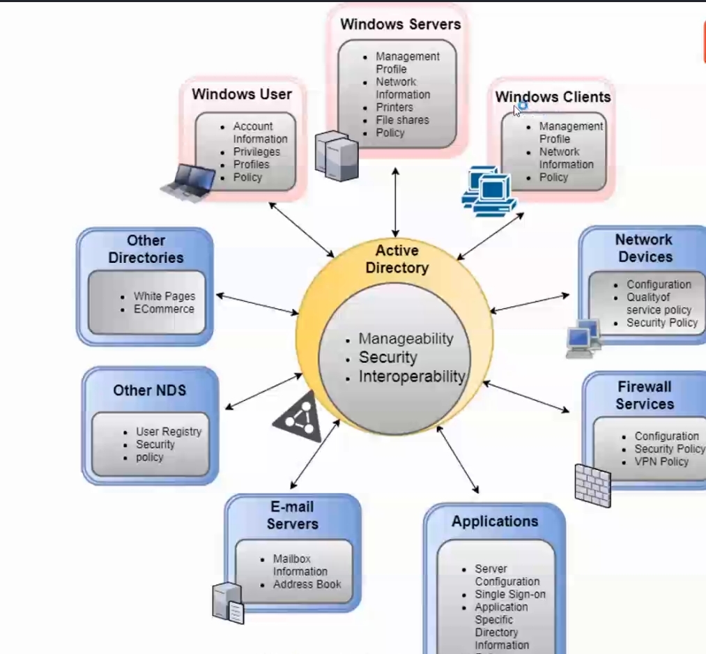 Acitve directory is used by most of business and corporations. You launch a corporation product.com this is called forest. There is DC(Domain Controller) for this forest which holds User Accounts and Computer Accounts. There are multiple departments/subdomains inside this forest like Marketing department, Accounting department, Finance department, Sales department, IT department, etc. These are in heirarchy like marketing.product.com, sales.product.com, accounting.product.com, IT.product.com, etc. Each subdomain have their own domain controller. In the forest product.com the user objects are containarized as groups like Domain Admins, Workstation Admins, Users, IT Group, Support Group, etc wheares the computer objects are containarized as organizational units like Workstations, Servers, Database Servers, Fax, Printers, etc. We create group policies eg: marketing group cannnot access resource of Finance Group but IT group can access resource of Sales group like this. Now suppose you launch another product named boom where root domain will be boom.com this domain may have its own child domains sales.boom.com, marketing.boom.com, etc since you launched boom.com you will configure boom.com to share the same layout or schema(database layout) as product.com. Now, according to configured trusts boom.com will have permissions to access resources of sales.product.com and so on but vice versa may not be allowed, IT.product.com and marketing.boom.com may be allowed to access each other's resources due to bi directional trust setup, etc. Every DC has copy of AD database and when changes is made to the schema this change is replicated to every single domain in the forest. Every single domain eg: sales.product.com, marketing.product.com has its own DC(Domain controller).Everything like computers,printers,fax,servers, etc are called objects in AD. Now how will one user of boom.com be able to find suppose a printer in sales.product.com? In AD there is a server known as Global Catalgoue Server or GC which is like a index page in dictionary which tells where each individual objects are but not detailed description of objects.